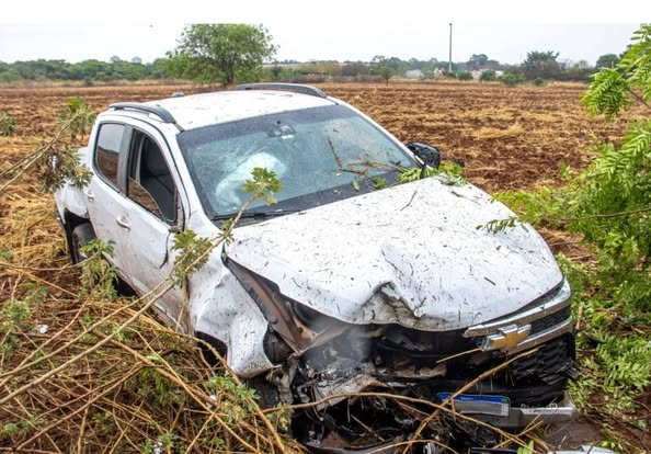 O veículo apresentava sinais de capotamento e estava com os dois airbags acionados. Além disso, o para-brisa estava quebrado.